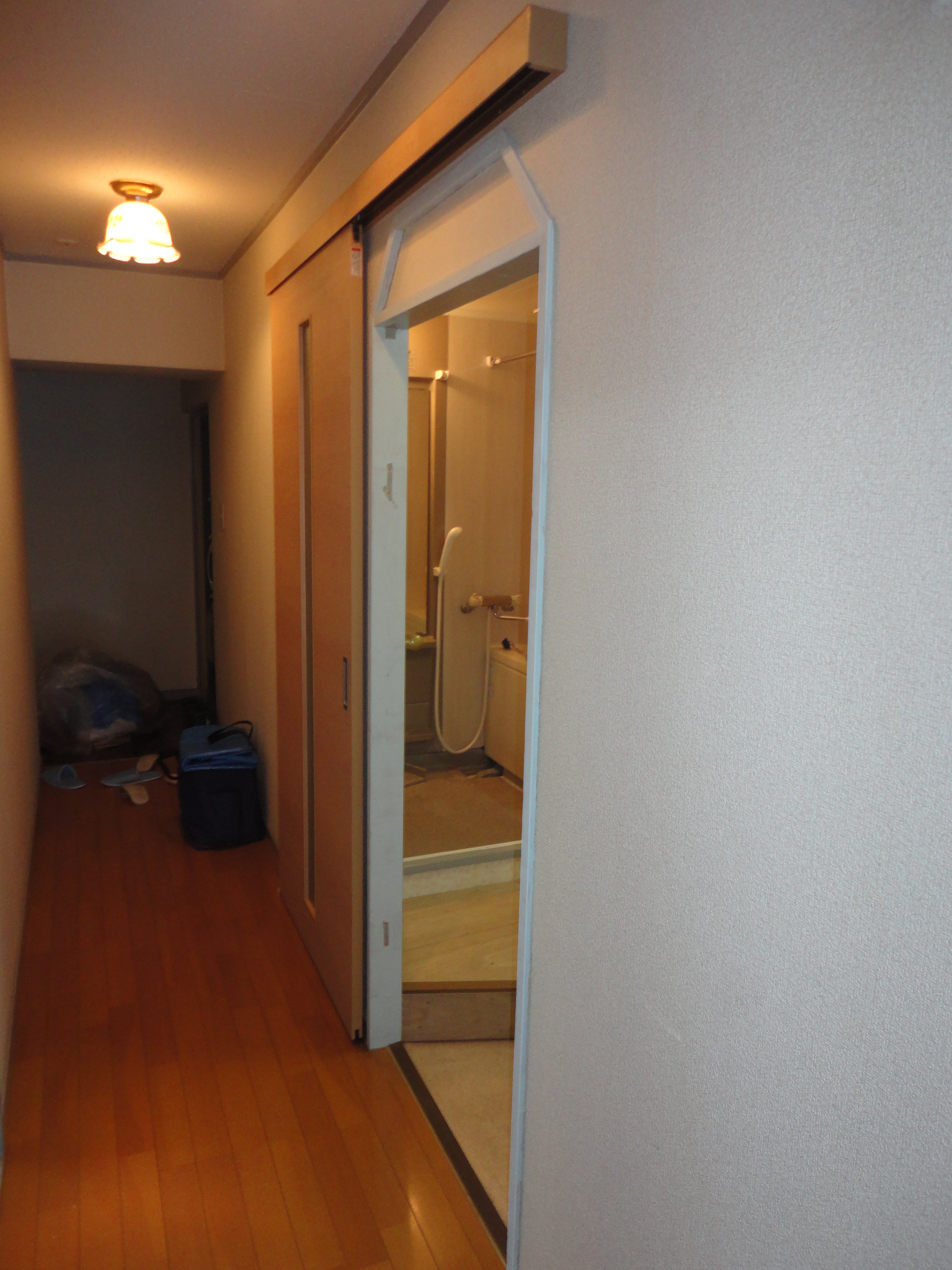 不動産会社様からのご依頼であった為、色々とご提案というよりもご指示を仰ぐ形で、後は任せますとおっしゃっていただきましたので、専門的な事や構造的な事のみご提案させて頂き、スムーズに工事の方が進みました。建物が若干傾いており調整が難しかったですが何とか吊り込みが出来てよかったです。