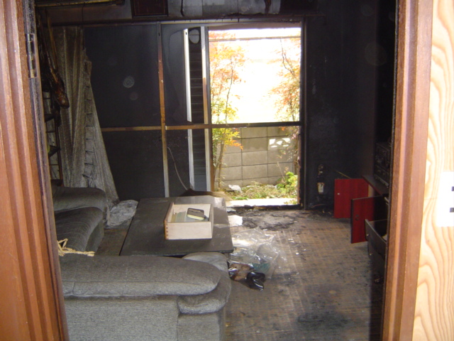 現場状況 | 幸い建物自体には火が回っておらず躯体等は問題なさそうですが、ボヤとはいえ復旧には時間が掛かりそうです。 |