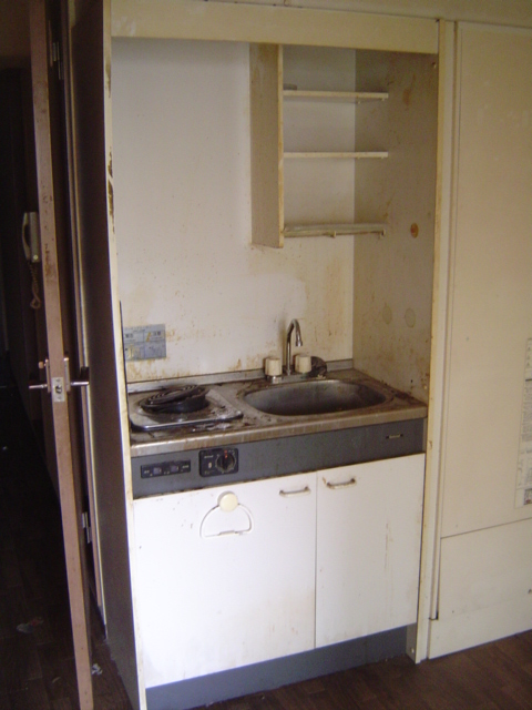 現場状況 | ミニキッチンで電気式のヒーターが入っておりましたが、故障しており取替が必要でした |