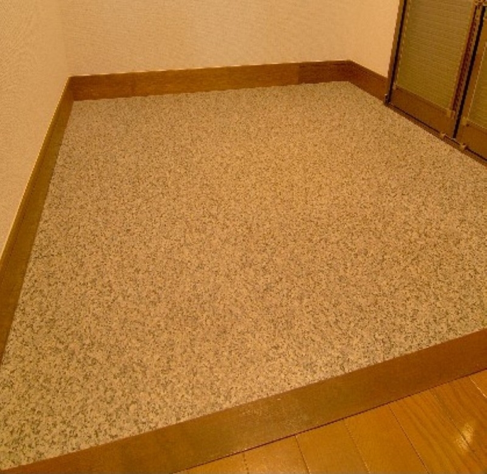 お客様のこだわりがありほぼほぼご指定頂いた内容で施工させて頂きました。床フローリングはリビングや廊下はそのまま使い、和室を洋室に替える為その部分を施工いたしました。また洗面室にはクッションフロアではなく竹素材のタイルを施工させて頂きました。玄関も石目のタイルを張り直しを致しております。