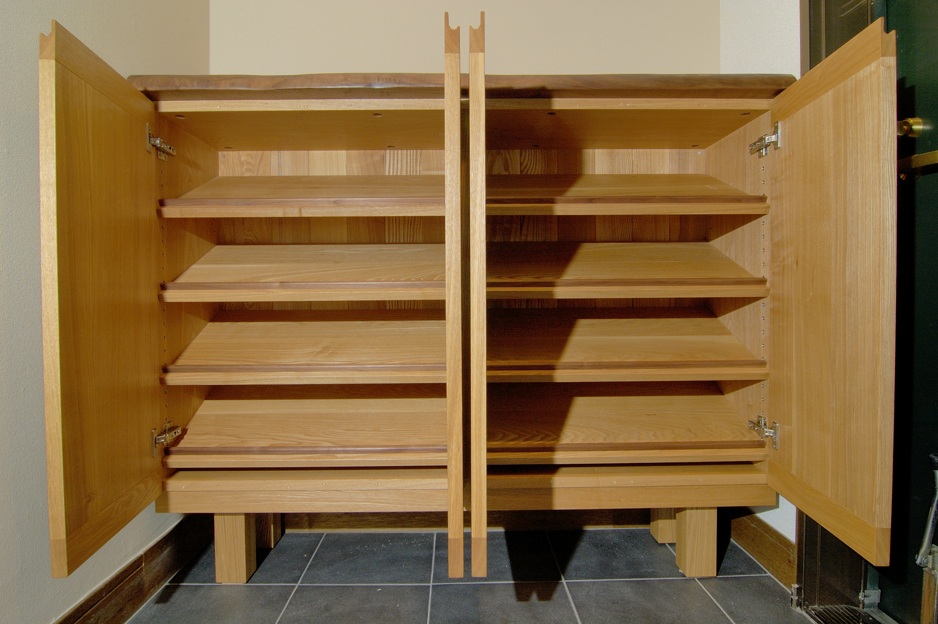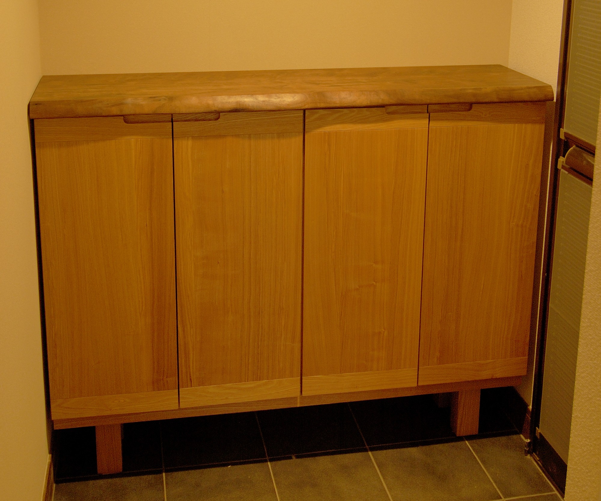 リフォームのご依頼の際にぴったりはまるサイズの机と下駄箱のオーダーを頂きました。大きさやイメージされている形などをお打ち合わせした後、素材決め、色決めなどを行います。どうぞお気軽にお問い合わせください。