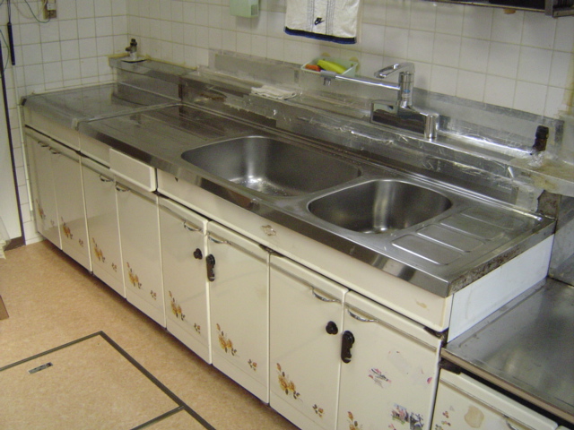 現場状況 | 傷みや汚れが酷くクリーニングでもなかなか厳しい状態でした。また現状がIHヒーターでしたがガスコンロへ変更がご希望でしたので、ガスの配管の確認も必要でした。 |